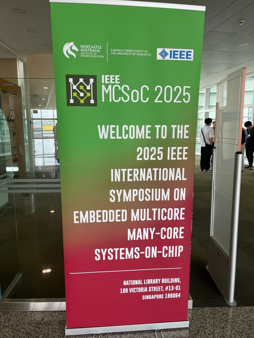 Kazuki Okazawa from D1 attended the 18th IEEE International Conference on Embedded Multi/Many-core Systems-on-Chip 2025 (MCSoC 2025), held in Singapore from December 15 to 18, 2025. He delivered an oral presentation titled “Carbon-Neutral Computing at the Edge: Scalable Greedy–LP Optimization of Green Data Centers.”